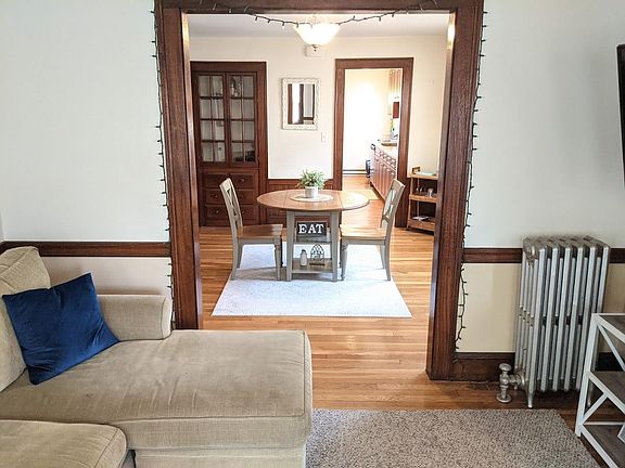 Beautiful, sunny, 2.5 bedrooms on the 3rd floor of a multi-family between Oak Sq and Brighton Ctr. Laundry in unit, hardwood floors, living room open to a large dining room with built in cabinet. Replacement windows and gas heat. King and Queen size bedrooms with an insulated sun room that's large enough to be used as a 3rd bedroom (double bed) or office. Back porch, large back yard, one driveway parking space, additional cars when snow emergency only. No Smoking or Dogs.
