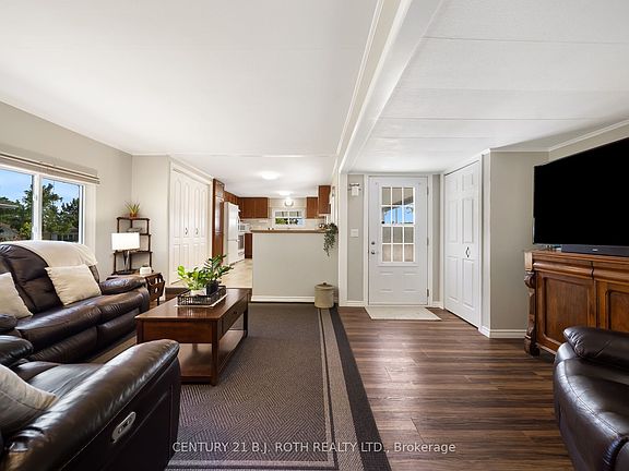 Enjoy relaxed adult living in Big Cedar Estates, a community between Orillia and Barrie. This well-cared-for Mailette model offers flexible 2- or 3-bedroom with a large primary bedroom with walk-in closet. It is an open-concept design, renovated kitchen, upgraded bath, newer laminate flooring, and updated lighting throughout as well as a large storage room and a pantry for convenience. Residents enjoy low-maintenance living with monthly fees of $345 covering water, sewer, lawn care, snow removal, clubhouse, walking trails, fibre optic internet, and Rogers TV, plus boat and RV parking when available. A welcoming home in a vibrant community!