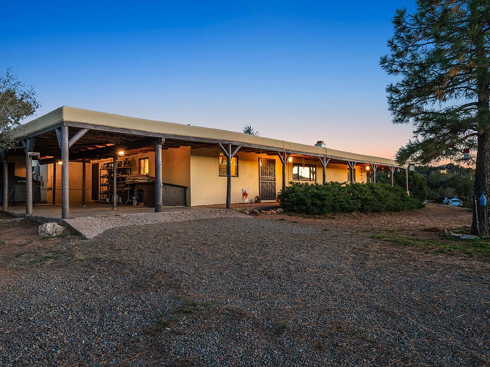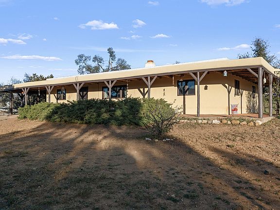 Discover your mountain retreat in the desirable Sandia Knolls subdivision! This charming single-story 4-bedroom, 3-bath home offers 2,267 sq ft on a .46-acre wooded lot with stunning Sandia Mountain views. Interior highlights include tongue-and-groove ceilings, brick and laminate flooring and 2 fireplaces. The great room opens to the kitchen with bar seating and a cozy breakfast nook, creating the perfect space for gatherings. The primary suite features a sitting area, wood stove and wet bar, while a second ensuite bedroom provides guest comfort. Outdoors, unwind on the covered front porch and enjoy the fully fenced yard. Two-car carport, 10 x 16 storage shed, graded RV parking, community water, 1 yr old tertiary septic system. A peaceful escape blending rustic charm and modern comfort!