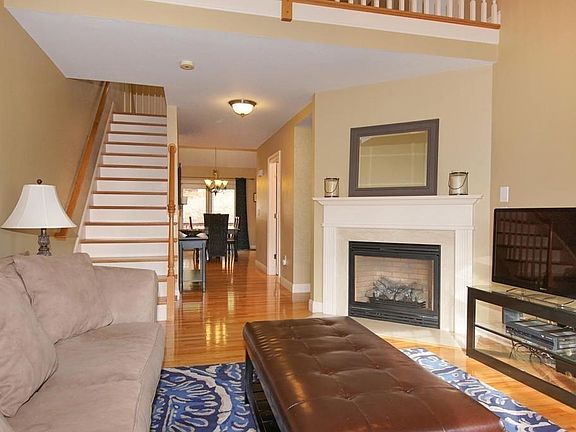 Special offering at Carrington Lane! State of the art living, at a great price. This 3 bedroom, 2full/2 half bath custom condo with garage is unique and tastefully done, with many amenities. Elegant gleaming hardwood floors compliment the custom cabinet kitchen with granite counter tops and stainless appliances. Dining room with hardwoods and vaulted ceiling features glass slider to private exterior deck. Open bright vaulted ceiling living room with custom framed gas fireplace, hardwoods and spacious loft area above. Master bedroom boasts double closets and master bath with cherry cabinets, double vanity and ceramic tile. Bonus space in loft for office/rec area. Family/Media room on first level great for rest and relaxation. End unit, perfect location!