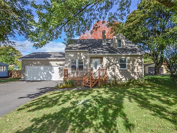 Are you a first time buyer? Downsizing? Hobbyist? If you answered yes, STOP and check out this Greece Cape! This 3 bedroom, 1 bathroom home has tons of updates & highlights! The first thing you'll notice upon arrival is the rare for the area, NEWLY built (2018) 24' x 24' oversized 2 car attached garage with insulated door & new double wide driveway (2018). From the exterior you'll also notice that the roof on this amazing home looks new too, as it was a complete tear-off in 2016! This home is situated on a double wide lot & the back yard is fully fenced! Inside, the eat-in kitchen was updated in 2020 w/oak cabinets, laminate flooring, new countertops, fresh paint, & all appliances are included! The full bathroom was also updated in 2019 w/a new bathtub & tub surround! There are two bedrooms on the first floor & 1 large bedroom upstairs w/an area off the bedroom upstairs that could be used for many things! Oh, and let's not forget, this home has all new doors, new 150AMP electric panel (2018), thermopane windows, & Goodman high efficiency furnace! Delayed showings begin on 10-15 & end on 10-18, negotiations begin on 10-19 at Noon! Don't miss out on this awesome home!