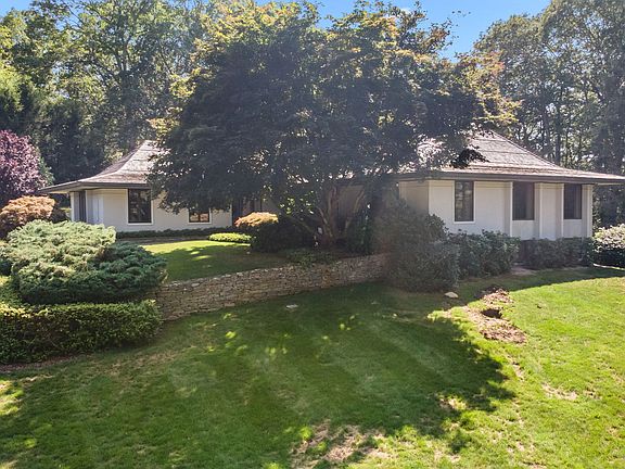 This custom masterpiece, inspired by Frank Lloyd Wright, embodies a refined architectural vision defined by balanced proportions, strong clean lines, soaring ceilings, plaster walls and meticulous attention to detail. Every element - from the selection of natural materials to the precision of the finish work - has been curated to create a serene, Zen-like atmosphere that evokes both tranquility and beauty. Expansive windows bathe the interior with natural light and frame captivating views of the surrounding landscape. Highlights include a dramatic skylight enhanced entry foyer, formal living & dining rooms each with fireplace, and a first floor bedroom suite all accented by Asian influenced motifs. The finished lower level offers abundant space with three guest rooms, a family room with fireplace, large storage room and private office. Outside, the 3.71 acre landscape - featured on a Child and Family Garden tour - is a showcase of mature plantings, flower beds, dry-laid stone walls, a striking Newport-style fountain, and Chinese pergola. Two additional buildings provide plenty of space for extra vehicles, workshop needs, and climate controlled boat/RV storage. Located on sought after Cove Road, this peaceful country oasis offers privacy and serenity with convenient access to two nearby marinas and routes 9 & 95.