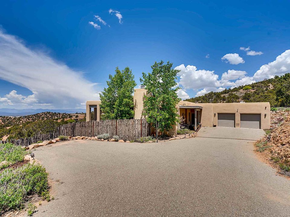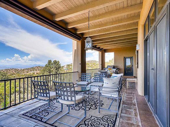 Come see this designer's custom single level home with one of a kind views of City lights, Jemez and southern mountain ranges. Enjoy intimate summer dinner parties from the protected west-facing portal. All of this in a secluded and gated community high in the foothills of the Sangre Mountains, but only 10 minutes from town. Ponderosa pines and wildlife abound. This home, built in 2009, has energy efficiency elements including a new boiler, water tank, newly recoated foam roof and massive insulation. High-end appliances compliment La Puerta rustic wood accents. Wood beamed ceilings blend with Santa Fe charm and contemporary spaces to create true OPEN CONCEPT LIVING. Other features include a deep west-facing portal with shade screens, Pella windows with sun coating, on demand hot water and handmade floor tiles. Point to point internet connection.