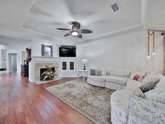 Tucked into quiet Woodlands enclave, this gem invites you to relax and refresh! Whether entertaining or reflecting your day on the custom lanai with rock fountain and curving dry stream bed, you're sure to love living here! Spacious family living with gas f/p, eat-in kitchen and open dining off entry. Generous Master bedroom w/bay windows leads to soothing en-suite bath w/huge closet. All bedrooms bright and equally inviting. Upgrades include hickory hardwoods, travertine, a "Wow!" granite kitchen, all new black-slate appliances. Newest updates - 50-gal water, Solar attic fan, Cedar fence, 50-year roof, freshly painted neutrals.
