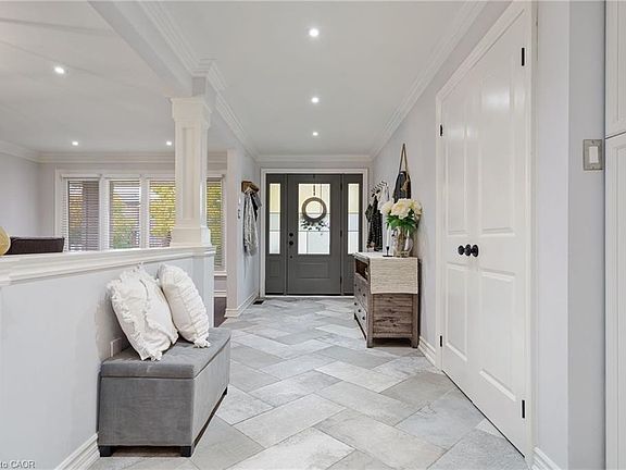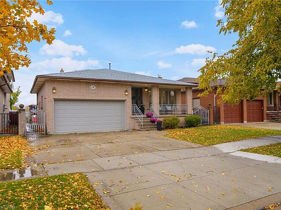 Welcome to this beautifully renovated all-brick 5-level backsplit offering over 2000 sq ft of finished living space, perfectly situated on a quiet, tree-lined street steps from Ferris Park. This exceptional home blends timeless craftsmanship with modern upgrades and offers excellent in-law potential with a separate entrance to the partially finished basement, complete with a second kitchen already in place. The main level features an open-concept layout enhanced by hardwood maple flooring, crown moulding, and pot lights throughout. The stunning custom maple kitchen is a true showpiece, offering solid soft-close cabinetry, two sinks, a 9-ft quartz island, pot filler over the gas stove, under-cabinet lighting, & stainless steel appliances—a perfect balance of beauty and function. Just two steps down from the kitchen, the spacious family room welcomes you with a custom-built gas fireplace with stone finish, a warm and inviting spot for gatherings or relaxing nights in. Conveniently located off this level is a 3-pc bath and a versatile rec room or fourth bedroom, ideal for guests, a playroom, or home office. The rod iron staircase adds an elegant architectural touch, connecting all levels seamlessly. Upstairs, you’ll find three generous bedrooms & a renovated 4-pc bath with custom cabinetry & premium finishes. The lower levels provide abundant living space, storage, & a separate entrance, offering flexibility for extended family living or future rental potential, with over 1350 sq ft of partially finished area ready for your personal touch. Outside, enjoy a fully fenced backyard with an irrigation system, two-car garage, & wide private driveway. Updates include a new roof, AC, & furnace (2023). Located on a quiet, family-friendly street steps from parks, schools, bus stops, & shopping, with QEW access in under five minutes, this home offers unmatched convenience & quality. Experience modern comfort & timeless style, this move-in-ready Stoney Creek gem truly has it all!