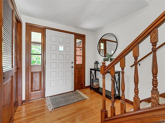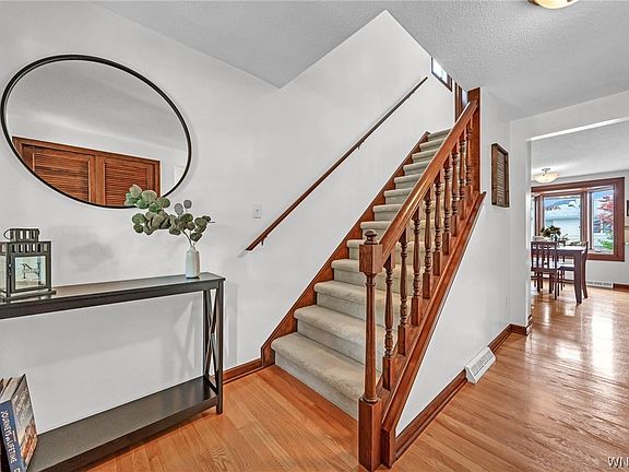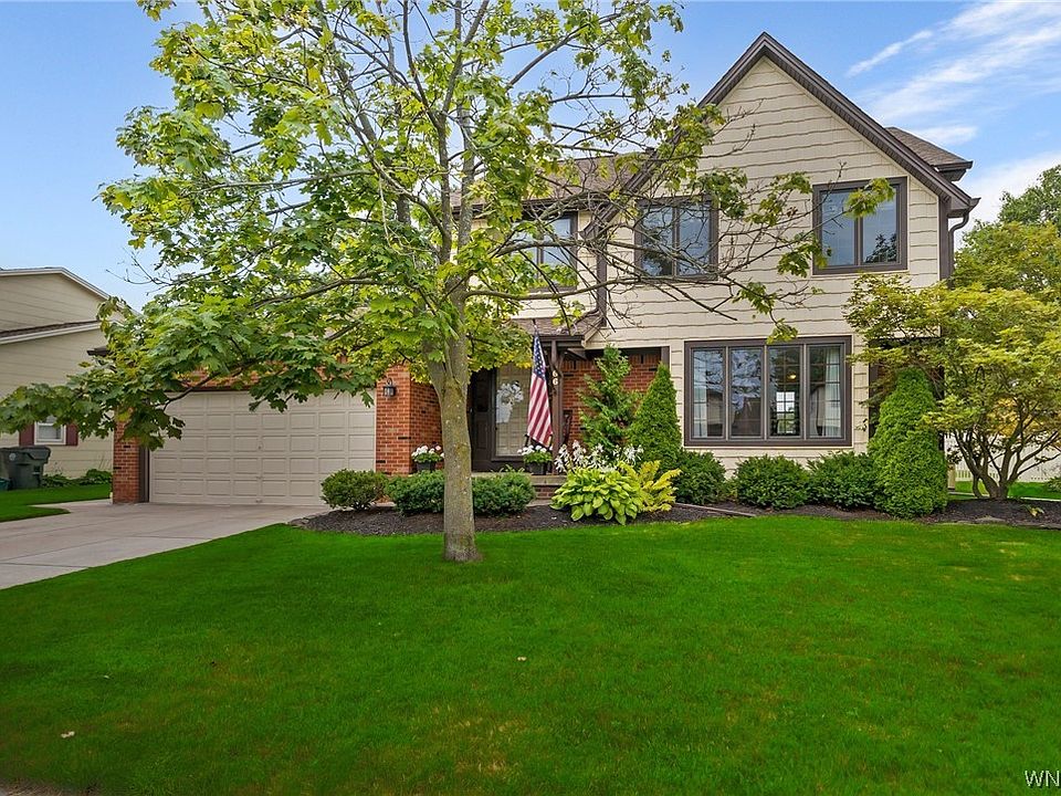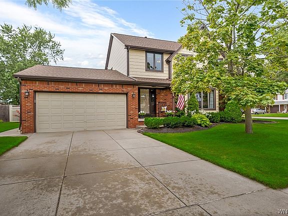 WELCOME HOME to this pretty, well-maintained Colonial in a quiet Depew neighborhood, minutes from everything you need but safely away from the hustle and bustle. This three-bedroom, 1½ bath home is truly move-in ready. Gorgeous custom hardwood floors on the first level take you into an eat-in kitchen, dining room and living room. Great cabinet and granite countertop space in the kitchen. Cozy family room leads to three-season room that can be heated by flipping a switch on the gas stove with ceramic logs for easy use. Second floor includes primary bedroom with walk-in closet and connecting bathroom. Pretty hardwood floor in one bedroom. Relax and/or exercise in a partially finished basement that includes a separate gym and plenty of storage. Fantastic fully fenced yard has two patios and great space. Showings begin immediately. Open house from 1-3 pm Sunday, Aug. 6. All offers, if any, must be submitted by 11 am Tuesday, Aug. 8. Make your appointment today!