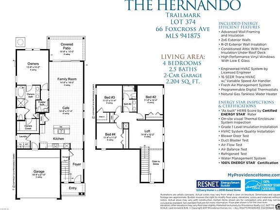 JANUARY 2019 COMPLETION. 100% Energy Star Certified Providence Home! The Hernando plan features family open to kitchen and cafe, Owners Suite downstairs and covered patio. Stainless Steel Appliances, tile flooring throughout except for bedrooms. Second floor with 3 bedrooms and Loft. Trailmark is a family-friendly new home community located in the growing World Golf Village area in highly desired St. Johns County. This community offers natural landscaping featuring tree lined winding roads throughout. Conveniently located to I-95, Trailmark is just minutes away from historical downtown St. Augustine, fantastic shopping, dining, great golf courses, and top rated schools.