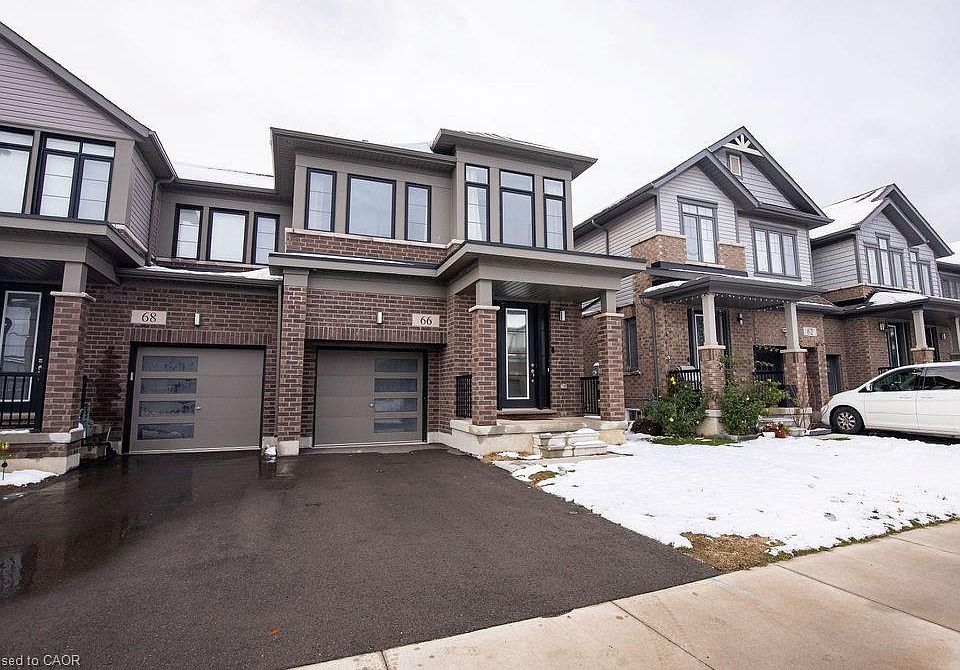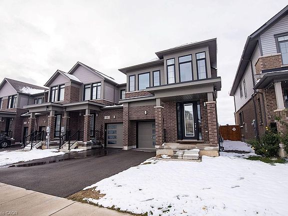 Welcome Home! This end unit townhome features 4 bedrooms, 3 bathrooms and offers over 1700 sq. ft. of beautifully finished living space over 2 floors. The open concept main level has hardwood floors throughout, an upgraded kitchen with quartz countertops & stainless steel appliances, sliding doors to the fully fenced in yard with views of farmland and forests, a powder room and access to the garage. The second level features a large primary bedroom with a walk-in closet and large ensuite bathroom with a dual sink vanity, separate tub & walk in shower. 3 spacious bedrooms, bathroom and laundry room finish off the second level. This home is located within walking distance of the Hamilton International Airport & is conveniently located with easy access to major highways, public transit, schools, shopping, restaurants, parks, & more!