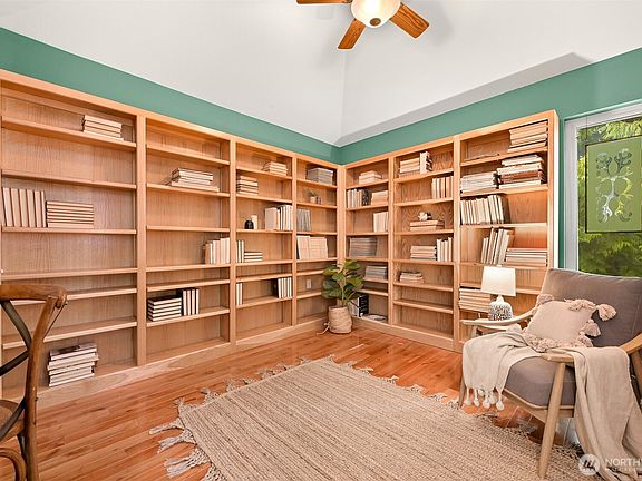 A feast for the senses, this home features custom print kitchen sliders and inset lighting that are unmatched as are the three bedrooms all with their own ensuite baths. Sale will include a $5,000 credit to lower you interest rate. The owner was an architect and designed the home so he and his partner could host guests and entertain. Maple, cedar and Saltillo tile flooring create a feeling of warmth to compliment the soothing green pouring in through the bay windows. The corner nook with peekabo lake views is ready for any creative use you can imagine. Both decks and roof are newly replaced and a high efficiency AC system recirculates the air for superior health. Cozy library has a desk included and shelves ready for your collection.