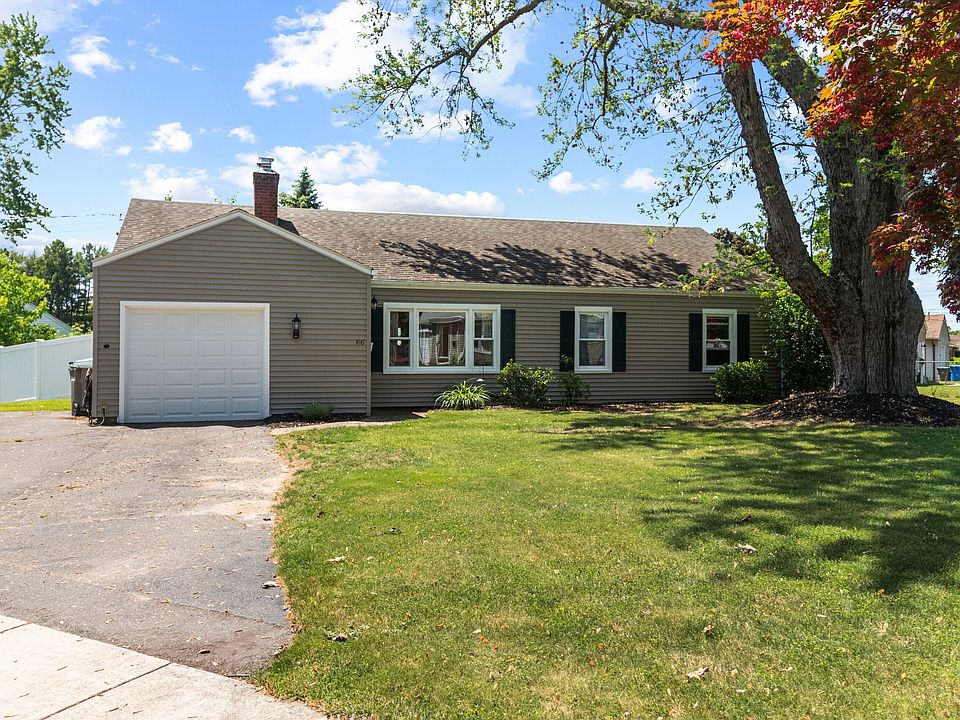 Nestled in a peaceful neighborhood, this charming ranch home exudes warmth and comfort from the moment you arrive. Step inside to find a cozy, open-concept living space, where natural light floods through large windows, illuminating the inviting living room. The living room seamlessly flows into the dining area, which is adjacent to the well-appointed kitchen. The kitchen features modern appliances, ample cabinetry with a view of the backyard. This home boasts three comfortably sized bedrooms, each with plush carpeting and generous closet space. The single bathroom is tastefully updated with contemporary fixtures, a sleek vanity, and a combination shower/tub. A highlight of this property is the backyard, featuring an in-ground swimming pool surrounded by a secure fence. The pool area is complemented by a sun-soaked patio, ideal for lounging, hosting summer barbecues, or entertaining guests. Mature trees provide a sense of privacy and tranquility, creating a perfect outdoor oasis. Completing this delightful home is an attached garage, offering convenient parking and additional storage space. This ranch home combines functionality, charm, and a touch of luxury with its delightful swimming pool and inviting living spaces.