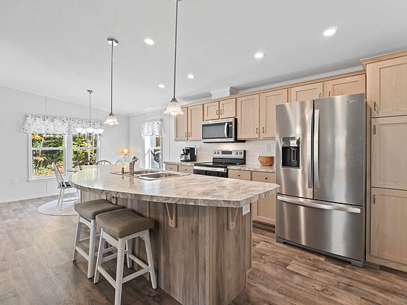 **2023 Double-Wide Mobile Home in Pristine Condition.** This immaculate, nearly new home offers 2 incredibly spacious bedrooms and a generous amount of storage. It features an office perfect for work-from-home needs. Enjoy the open-concept living space, including an eat-in kitchen with pantry that flows seamlessly into the living area. Situated on a private corner lot and the last home on Harmony Hill Road, this property includes a spacious 1.5-car garage and a welcoming front porch. Located just 5 minutes from the Topsham Fair Mall and I-95, this home offers both serenity and proximity to area amenities. Don't miss the opportunity to own this beautiful, move-in ready home!