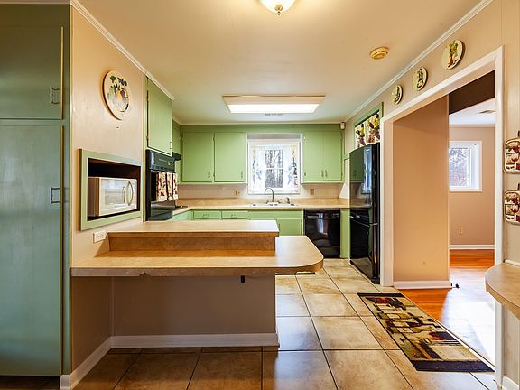 SPACIOUS COUNTRY HOME READY JUST IN TIME FOR SPRING! Move-in ready 2,494 sqft ranch style home has finished basement on 3 acres partially wooded with creek. 5 beds, 2 baths, AND 2 Kitchens (2 BR up, 3 BR down, bathroom and kitchen on each floor). Refrigerator, dishwasher, microwave, electric cook-top stove and separate oven upstairs. Refrigerator, Electric range/oven, Washer and Dryer downstairs are all included! No carpet! Tankless hot water heater! Alarm system (works, not active). County taxes only! Extra room off the kitchen has been used as an office and small child's bedroom and can be closed off by solid wood doors. Hvac for upstairs is less than a yr old! Worried about tornados? The downstairs may provide shelter from storms and could be used as a man-cave or mother-in-law suite! Downstairs den with wood stove and window/wall units for heat and air. Attached carport, plus a 20×30 detached garage Variety of flowers, fruit trees & bushes and even a current termite contract!