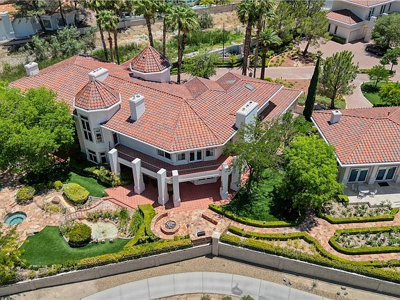 IMPRESSIVE TRIPLE GATED PROPERTY WITHIN THE GROUNDS OF 24 HOUR GUARD GATED SPANISH TRAIL GOLF AND COUNTRY CLUB. 27 HOLE PRIVATE GOLF COURSE. THE PROPERTY CONSISTS OF 1.6 ACRES OF LUSHLY LANDSCAPED GROUNDS WITH A POOL/WATERFALL AND TWO SPAS. RUNNING STREAM, OUTDOOR FIREPIT AND ROSE GARDENS OVERLOOKING 4 FAIRWAYS, LAKE/WATEFALL/MOUNTAIN AND SUNSET VIEWS. THIS INCREDIBLE FAMILY COMPOUND MAIN HOME IS APPROXIMATELY 10,300 SQ FT WITH EXQUISITE DETAIL THROUGHOUT. 1 BEDROOM DOWN, 2 BEDROOMS UPSTAIRS EACH WITH ITS OWN BATH AND BALCONY. ART ROOM PLUS LARGE DEN/OFFICE. 3 CAR OVERSIZED DRIVE THROUGH GARAGE. SEPARATE 1,200 SQ FT PARTY/TEA HOUSE OFFERS AN INTRICATE COFFERED CEILING. 5,100 SQ FT GUEST/CARRIAGE HOUSE HAS A 5 CAR GARAGE. GYM/WET BAR/WINE ROOM. THE COMPOUND CONSISTS OF 5-6 BEDROOMS, 7 FULL BATHS PLUS 2 HALF BATHS. 8-10 CAR GARAGES. 15 MINUTES FROM THE LAS VEGAS STRIP, AIRPORT AND LAS VEGAS RAIDER STADIUM. TOTALLY 16,600 SQ FT
