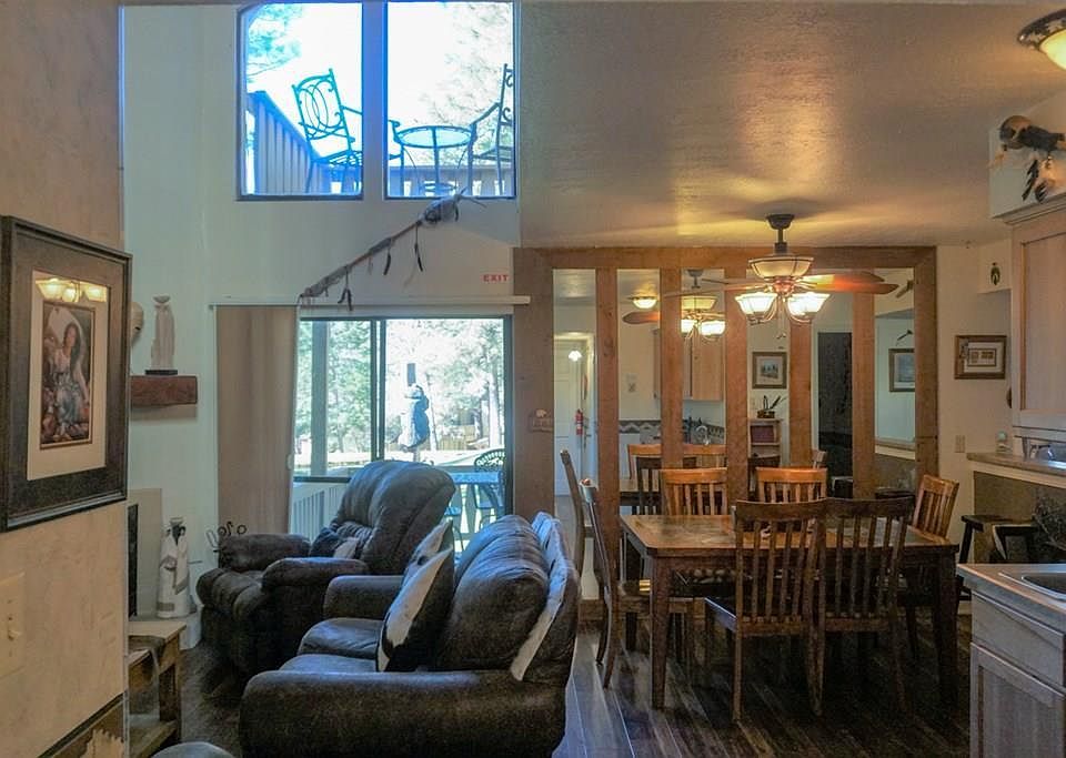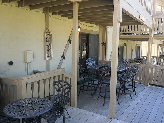 From the back deck a view of the golf course and fountain on the No. 1 Tee Box pond.Beautiful townhome with a Southwest flair, new furniture, new stainless steel appliances, new laminate flooring and carpet.On the first level is the living room with fireplace, kitchen with custom cabinets, dining area, laundry/pantry, wet bar with lots of storage space, half bath and a large back deck with new deck furniture where you can drink your coffee and enjoy the view. Second level open loft with a view of the golf course and fountain from large windows in the living room, master bedroom with private bath and deck, hall bath and second bedroom has a deck with a view of water and trees.