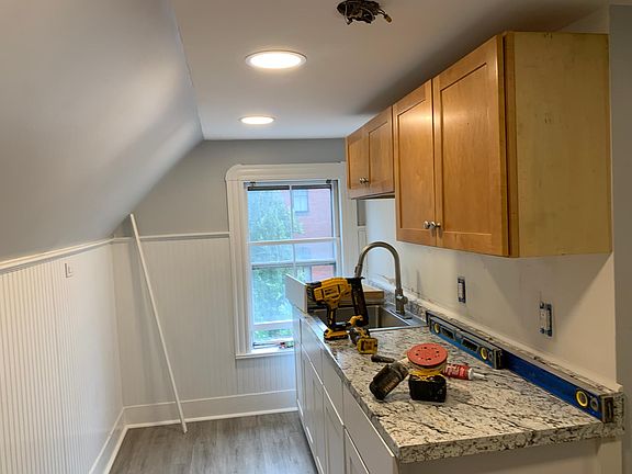 Home is being updated and will be available for August 1. Brand new kitchen, floors and paint throughout. Owner will replace windows when they come in. Ideal location! Water and sewer, 1 parking space included.