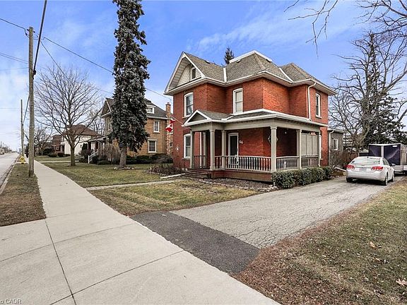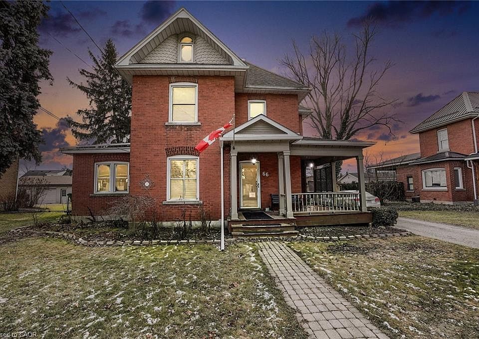This stately 2.5-storey home is a true gem, offering both timeless charm and modern comfort. Its classic architecture is accentuated by a stunning covered wraparound front porch, perfect for relaxing while enjoying the relaxing view of the front yard. The landscaping is meticulously curated, with lush greenery, vibrant flower beds, and towering trees that enhance the home's curb appeal. Situated close to the heart of downtown Hagersville, this home enjoys a prime location that provides easy access to all the conveniences of small-town life, while still offering the serenity and privacy of a charming residential area. The exterior boasts elegant features such as detailed woodwork, classic red brick accents, and large, inviting windows that allow natural light to pour into the spacious interiors. The half-storey of this home is truly unique, offering a versatile loft space that could serve multiple purposes. Whether you dream of creating an inspiring art studio, a peaceful reading nook, or a private getaway for an unruly teenager, this area offers endless possibilities. Inside, the home continues to impress with just over 2,000 square feet of living space, its blend of traditional design and contemporary comforts. Spacious living areas, elegant finishes, and thoughtfully designed rooms create a welcoming atmosphere throughout. This home offers the perfect balance of charm, character, and functionality, making it a standout property in one of Hagersville's most desirable locations. Whether you're relaxing on the porch, retreating to the loft, or exploring the vibrant downtown just minutes away, this home promises a lifestyle of both comfort and convenience.