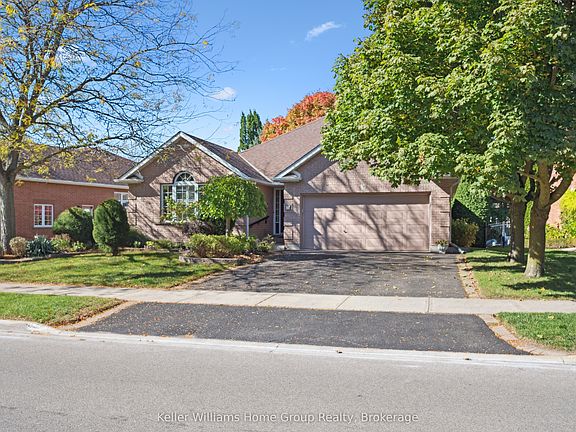 Welcome to this beautifully maintained bungaloft in Guelph's highly sought-after Kortright East neighbourhood - where comfort, functionality, and charm come together seamlessly.The main floor offers a bright and spacious layout featuring two bedrooms, including a primary suite with a walk-in closet and private ensuite bathroom. A second bedroom with its own 3-piece bath provides flexibility for guests or family. Enjoy the ease of main floor laundry, vaulted ceilings with skylights, and a cozy gas fireplace that anchors the sun-filled living room.Downstairs, the finished basement extends your living space with two additional bedrooms, a den, office, and a 2-piece bath with shower rough-in-perfect for a growing family, home business, or multigenerational living with separate basement entrance through the garage. Ample storage throughout ensures everything has its place.Step outside to a private backyard surrounded by mature trees, ideal for relaxing or entertaining. A double car garage and spacious driveway complete this exceptional property.Located in a quiet, established community close to parks, trails, top-rated schools, shopping, and transit, this home offers the perfect blend of tranquility and convenience.