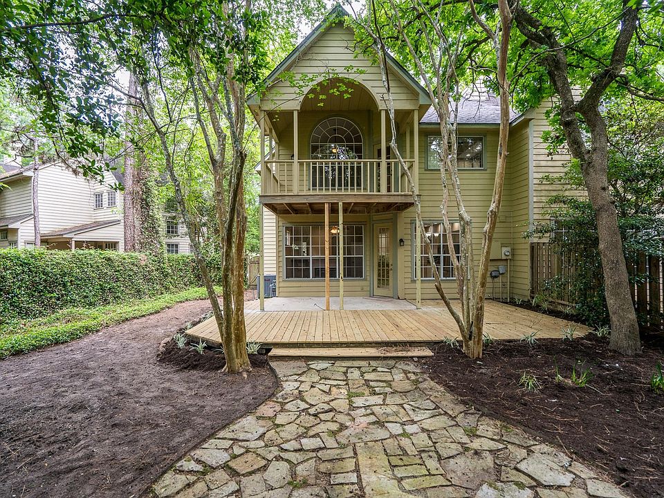 Quaint townhome in Forest Lake neighborhood of Cochrans Village in The Woodlands. Soaring ceilings and tons of natural light with new flooring throughout. Stainless steel appliances, refrigerator, washer and dryer included. All three bedrooms are upstairs. Primary bedroom has a private balcony overlooking the back yard and greenbelt. No rear neighbors! Bathrooms and kitchen have been nicely upgraded. Upstairs nook is great for a small playroom or office. Front yard maintenance is included. Schedule an appointment to see it today.
