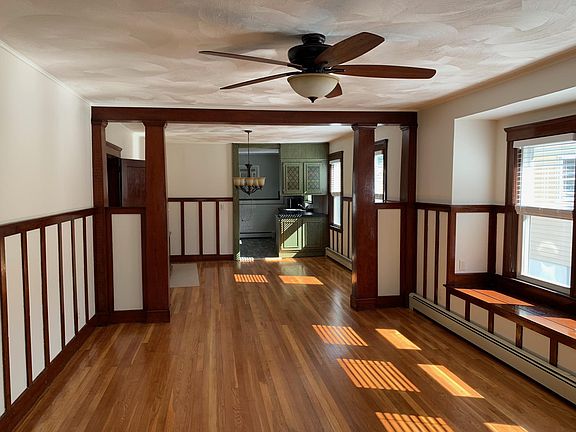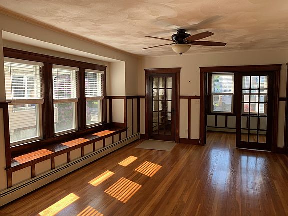 Family owned and occupied two family located in the desirable Linden area. 1st floor unit is a spacious 2 bedrooms plus den/office. Hardwood floors throughout, updated kitchen with stainless steel appliances (gas range, refrigerator, dishwasher, microwave, disposal). Brand new updated bathroom with new fixtures (sink, toilet). Wash machine and dryer in basement. Open floorpan includes period details like mahogany wainscoting and woodwork throughout. New white wood blinds throughout, fans in each bedroom and one large fan in living room. Three seasons rear porch overlooking private yard. Plenty of space for the entire family. Quiet neighborhood located directly on a bus line and close to rt. 1. Minutes to Linden Square, Shopping Centers, Theater, Schools, Parks, etc. Only 8 miles to Boston by car. Frist and security deposit ($500) required. Water included in rent, renter pays heat (oil), electrical, gas and trash (blue bags for Malden). No pets.