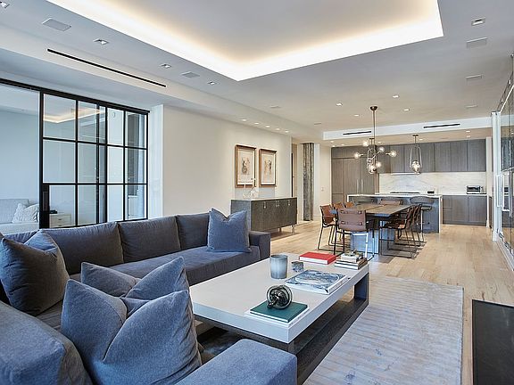 One enters this 3 Bedroom, 2.5 bathroom home through a large, custom designed entry foyer that flows seamlessly into an enormous great room with high ceilings and custom cove lighting, original cast iron columns, and a gas burning Mendota fireplace. The open kitchen is a true chef's dream and features Gaggenau appliances, a Miele Dishwasher, custom Wunderground designed cabinetry, Imperial Danby marble countertops with waterfall edge, and abundant storage.