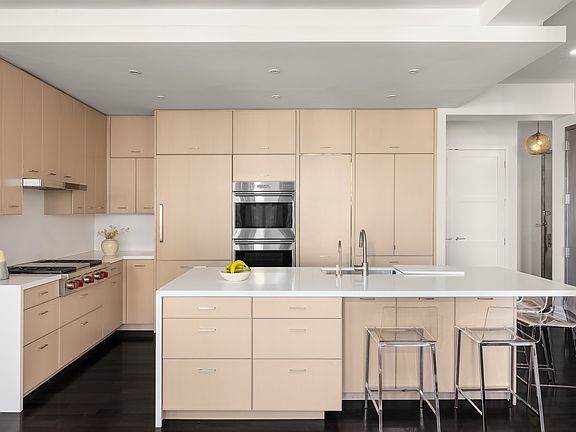 Residence 9B welcomes you with soaring ceilings, oversized windows, and wide-plank oak floors, filling the home with natural light and warmth. The 42-foot-long great room is an entertainer's dream, featuring a gas fireplace, custom built-ins, flat-screen TV, and an integrated Sonos sound systemthe perfect setting for both relaxed evenings and elegant gatherings.
