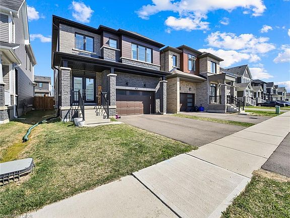 Welcome to this bright and spacious less-than-5-year-old contemporary home offering over 2700 sq. ft. of beautifully finished living space, with 2200 sq.ft. above ground and a finished basement! As you enter through the elegant double door entry, you’re greeted by a welcoming foyer with a large walk-in closet, setting the tone for the functional layout and upscale finishes throughout. The main floor boasts a stylish open-concept kitchen, a dedicated office space, and a sun-filled great room flowing seamlessly into the dining area, which opens through sliding glass doors to a fully fenced backyard—perfect for family gatherings and outdoor entertaining. Upstairs, you’ll find four generously sized bedrooms, including a luxurious primary suite with a 5-piece ensuite bathroom and a massive walk-in closet. The mostly finished basement offers even more flexibility, with ample space ideal for an in-law suite, recreation room, or home gym. This home features ample parking with a double-car garage and a double-wide driveway. Located in a vibrant new community, you’ll enjoy close proximity to the Grand River, scenic trails, and parks, making it ideal for nature lovers. Plus, a brand-new school just steps away adds incredible value for growing families. *Premium appliances and Gas stove*