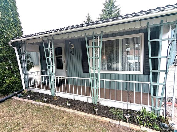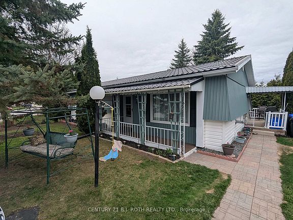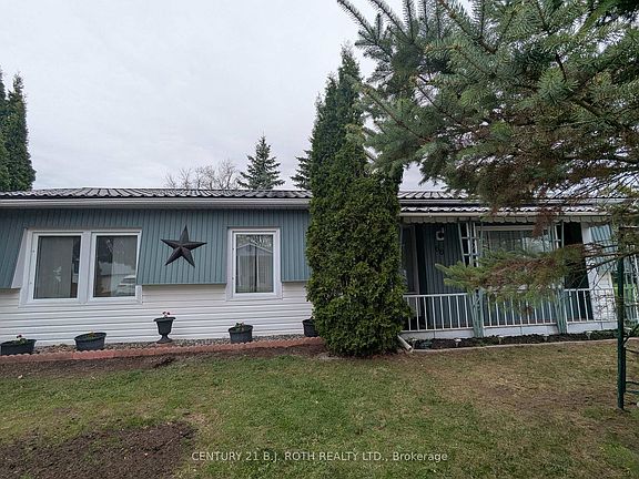 **EXCELLENT VALUE!** This upgraded 2-bedroom, 1-bath 'Sandalwood' model in *Sandycove Acres* offers turnkey retirement living with all the comforts you deserve. Easy access from the street with no steps. Parking for two cars. Solid wood kitchen cabinetry, granite countertops in both kitchen and bath, and a gas stove, this home is move-in ready. Enjoy a spacious living room with a cozy gas fireplace, a large dining area with walkout to a private yard and covered deck, and a fully renovated bathroom with a walk-in shower and luxury fixtures. Additional highlights include high-end laminate flooring, a built-in dishwasher, a stylish steel roof, central air, a high-efficiency gas furnace, premium front-load washer/dryer, excellent windows, and an exterior storage shed. Sandycove Acres sits just minutes from Lake Simcoe, 10 minutes south of Barrie, and 45 minutes north of Toronto. Residents enjoy access to three clubhouses: The Hub, The Spoke, and The Wheel, featuring a ballroom, library, full kitchen, heated outdoor pool, shuffleboard courts, and more. The on-site Sandycove Mall offers unmatched convenience with a drug store, variety store, hair salon, restaurant, and more just steps away. Land lease fee: $855/month + estimated taxes $172/month. Live in comfort and style while enjoying the peaceful, social lifestyle Sandycove Acres is known for!
