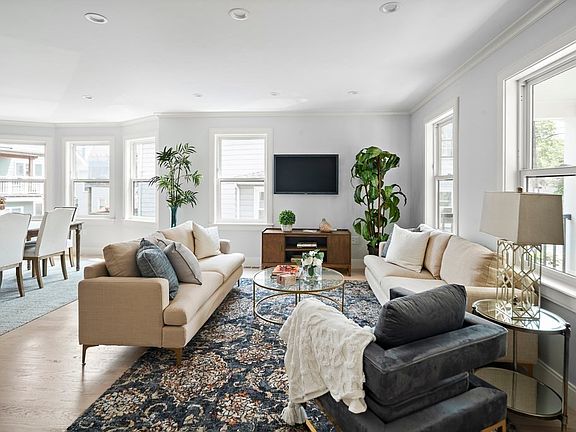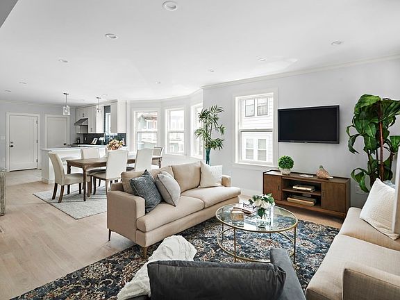 Walls came down and were rearranged to create this extraordinary, thoughtfully designed, luxurious duplex residence on a peaceful side street in Brookline Village. Both levels are sun-filled, wrapped in large windows. The first level features an open concept living area; beautiful chef’s kitchen appointed w/white cabinets, plentiful quartz counters, b’fast bar & Thermador appliances; main BR suite w/beautiful bath and large w/i closet; 2nd BR, also well-suited as an office, & add’l full bath. The lower level comprises a terrific family room, 2 more spacious bedrooms, a 3rd gorgeous full bathroom, laundry room & storage. Beautiful color scheme and fine fixtures & finishes. Elegant mouldings. New roof, new siding, new systems. Central air. 1 car pkg. Exclusive use of patio; shared use of backyard. Pet friendly. Superb location. Close to Longwood Area; immediate access to Rte. 9; around the corner to shops, restaurants, T & buses.