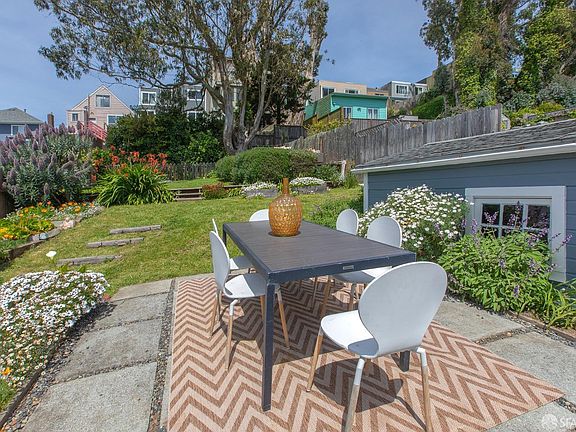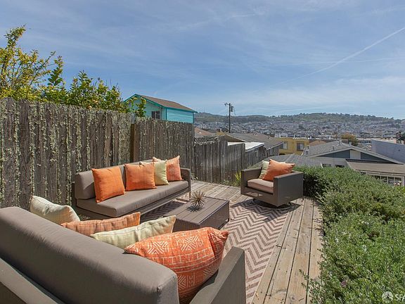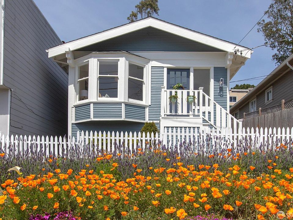 Welcome to 66 Lobos, a detached Craftsman bungalow with amazing curb appeal from the front yard filled with California poppies to the original siding, bay windows and of course the white picket fence. The spacious foyer leads to the open plan living area, flooded with natural light. This space is open to the adorable kitchen creating an amazing space to entertain or relax with family and friends. The front bedroom has bay windows with wonderful views over the Daly City hills. The second bedroom, at the back of the home, provides a peaceful retreat from life's stresses. Adjacent to this bedroom, is an office which also has laundry. Accessed from either bedroom is an updated bathroom with a claw foot tub. At the back of the home the immense terraced yard (on a huge lot) offers so many possibilities to develop your green thumb or simply relax in one of the multiple seating areas and enjoy a beautiful sunset, views of the ocean or admire the lush garden that the sellers have enthusiastically established. Not only is there a detached garage but there is also room for multiple cars in the driveway. Easy access to 280, a couple of blocks to the M'' MUNI line and a short walk to BART. This is an amazing opportunity to own a single-family home in San Francisco at a condo price!