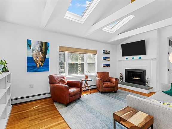 OPEN HOUSE CANCELLED 4/26 Welcome to 66 Merton Street, a bright and inviting three-bedroom, two-bath home that offers a rare combination of privacy and convenience. Nestled on a spacious, fenced-in lot, this charming property is just a short stroll from Easton’s Beach, the Cliff Walk, and all the shops and attractions of downtown Newport. Step inside to a sun-drenched foyer leading to an open and airy living space featuring vaulted ceilings, skylights, a cozy fireplace, and custom built-ins. The updated kitchen boasts stainless steel appliances, Corian countertops, and seamless access to the dining area, where sliding doors open to the brand new, expansive deck—perfect for indoor-outdoor entertaining. The living room, flooded with sunlight offers vaulted ceiling, exposed beams and gas fireplace. The primary suite includes an updated en-suite bath and ample closet space, while two additional bedrooms share a second renovated bathroom. The beautifully landscaped backyard features raised garden beds with blackberries and raspberries and a garden shed. Thoughtfully maintained with sustainability in mind, this home includes owned solar panels, a newer roof, and an ultra-efficient Navien boiler (2018) and Mini-split A/C (2023). Move right in and enjoy the best of coastal living, just minutes from the sand and surf!