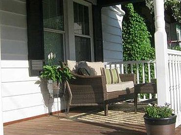 Enjoy the outdoors on the front porch, or have fun on the rear double deck. Brick patio under deck. Back yard plus 2 off street parking spaces from alley. Nicely updated oak kit with plenty of cabinets, ceramic flr, garden window, large pantry. LR & DR has pergo style flooring, real hardwood exposed 2nd flr. Don't miss the large 6x4 hall walk-in closet with make-up area. Gamerm has dry bar. Updated mechanics, newer frt porch flooring, updated windows