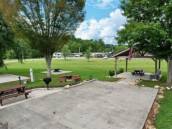Welcome to your mountain getaway! This spacious RV lot has everything set up for comfort, convenience, and fun in the North Georgia mountains. Located in a desirable RV/tiny home community, it features a custom 18' x 18' pavilion with a custom-built Amish swing, power and additional outlets already added for more fans and lighting, string lights, a fan and space to fit a custom-built fireplace, giving you options to enhance the space further. The extra-large concrete pad (23' x 90') easily accommodates larger RVs, with a bump-out area perfect for a picnic table or extra seating. The lot is level and shaded - one of the largest shaded lots in the community, creating a cool retreat during the warmer months. A small brook runs along the back, with the community disc golf course and green space just beyond, giving you a peaceful view without losing privacy. For unforgettable outdoor gatherings, there's a fire pit with four custom benches and a park grill - ideal for evenings spent making ever-lasting memories. As part of the community, you'll enjoy gated access and amenities including a pool, clubhouse, playground, dog park, basketball, trout creek, two catch-and- release ponds, and more - all just minutes from charming downtown Blue Ridge, Lake Blue Ridge, Toccoa River, orchards, wineries, waterfalls, and hiking trails. This lot offers both flexibility and mountain charm and is great for a personal getaway or an investment with great rental potential. Great rental history, can provide it by request.