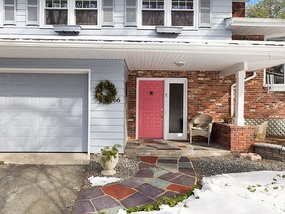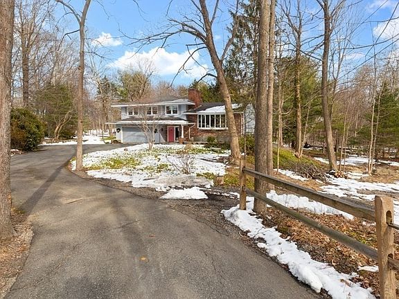 Lovely bright & expanded 8 rm, 4 bdrm, 2.5 bath Mid century modern/multi level w/heated 2 car garage on 2+ acres! Lg foyer leads to family rm w/triple French dr to lovely bluestone patio overlooking breathtaking views of gorgeous private backyard! Huge open living rm w/custom stone fireplace, hdwd fl & Lg Bow window! Bright formal dining rm w/hrdwd fl & Bow window! Beautiful expanded sunny eat-in kit w/cathedral ceiling, skylts, hdwd fl, recessed Lts & door to composite deck! Master suite w/hardwd fl, full bth, Bay window & walk in closet! 3 additional bdrms w/dbl cl & hardwd flrs! Full bth w/tiled tub/shower, huge vanity & tile fl! First fl 1/2 bath & separate laundry rm w/utility sink! Gas heat & Central air! Expansion potential in huge lower level w/workshop, fireplace & loads of storage! Magnificent & expansive private 2+ acre lot w/mature plantings, bluestone patio, Koi pond, walking paths, seating areas & 2 sheds! Close to top rated schools, all major routes, shops & restaurants!