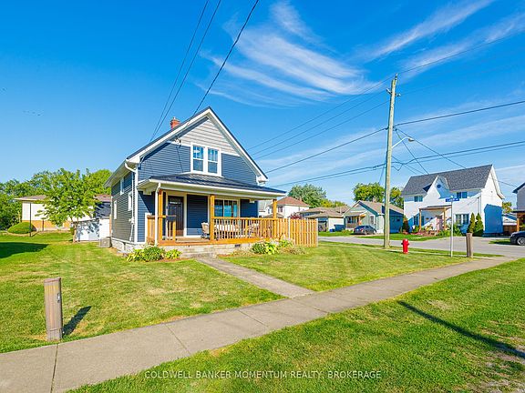 Located in the charming city of Port Colborne, this neighbourhood was geared for families in mind. There are schools, parks and arena located in close proximity. When you drive welcomed by the beautiful curb appeal and lovely front covered porch. Tasteful renovations. throughout the living area with nice open kitchen, dining and living room area. The main floor also features a laundry room, adjacent to a lovely 2 piece bathroom and walkout to deck and fully fenced yard. Notable updates are steel roof and windows in 2020. Basement is high and dry and can provide great storage or future development. This property is located on a corner lot but has a large back yard and access for future development for accessory unit and ability to accomodate further parking
