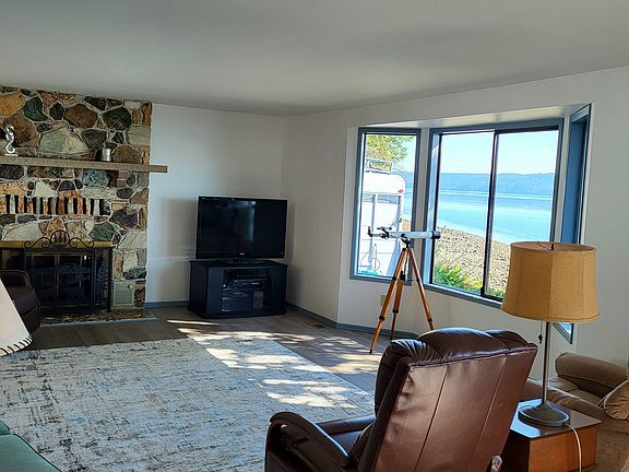 Work from PARADISE! Quite, peaceful, remote 1440 sq. ft. home. Beautiful 180 degree view of Dabob Bay. Fully remodeled, fully furnished, covered parking. Your limit of oysters and clams right outside your front door. 300 feet of private beach. Wildlife abundant, deer, otter, eagles, seals and occasional whales. Located at the foot of the Olympic Mountains leads to many hiking trails. Relax viewing the waters of Dabob Bay with occasional Naval maneuver viewing.