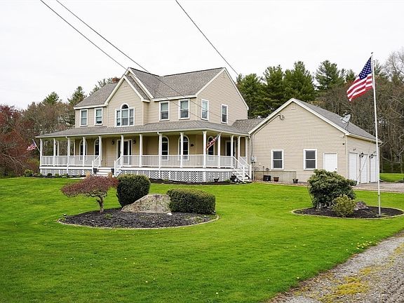 Discover your slice of paradise in Oxford! This captivating Colonial home offers 3 beds, 2.5 baths, and sits on over 6 acres of land with a serene pond. Enjoy your evenings on the wrap-around porch or warm up around the firepit. For all your storage needs there's a 3-car garage with high ceilings. Cool down this summer by taking a dip in the pool. Once inside you'll find a renovated kitchen with granite countertops, a wood insert-warmed living room, formal dining room and a 1/2 bath. Upstairs, a luxurious primary bedroom with a soaking tub awaits. Also upstairs there are 2 more bedrooms, office and a common bathroom. With a finished basement, this home is perfect for relaxation and entertaining. Live the dream of country living with modern conveniences. Small fishing pond on property.