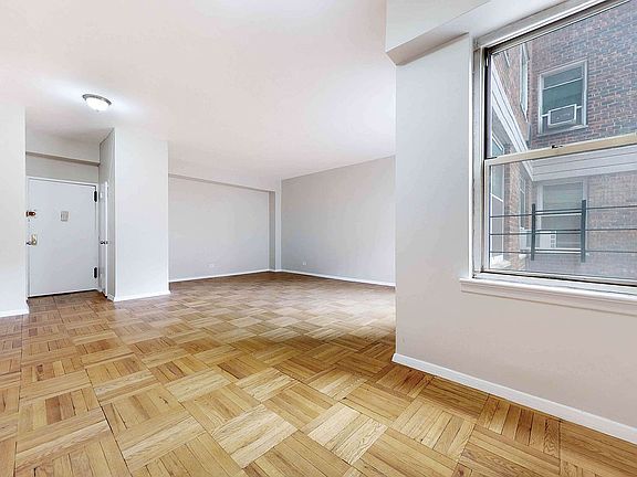 The expansive nature of the apartment is evident the moment you enter the front foyer. The main living area features corner windows and is big enough for all your furniture and media. There is an open nook at one end that would be perfect as a workspace, and another by the kitchen for your dining table. Vintage parquet floors run throughout the residence. The primary bedroom is spacious and sunny with exposures on two sides. The secondary bedroom has a big double window and two closets.