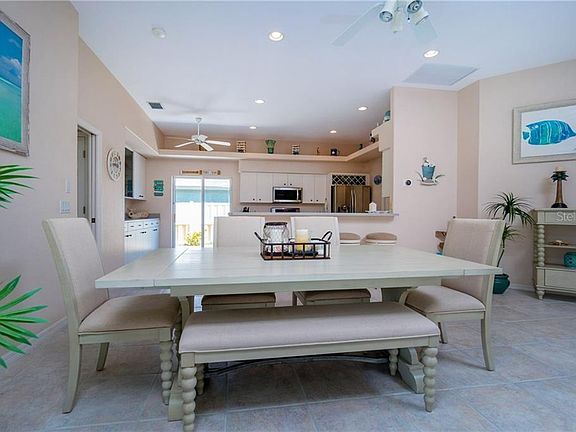 Yearly lease preferred but will consider 6+ months, nothing less. Very nicely furnished rental property with a beachy feel of cool blues, whites and grays. Tiled floors throughout main area, den and Primary Bedroom. Primary BR has private bath with separate soaking tub. Carpet in BR2 and BR3 which share a hall bath. All appliances in good condition. Ample garage space with extra high doors ideal for small camper or boat/trailer storage. Screen pool/lanai area. TV's in all BR's, L/R, Den + Lanai. Property is located in the Long Meadow section of Rotonda which offers 5 Golf Courses, Bike/Walking Trails and a Community Center with regularly scheduled activities. Close to Boca Grande, Englewood Beach, Shopping, Fishing, Boating and Restaurants. Will consider Rent to Own. Owner pays pool service, mowing, HOA Fee and maintains HVAC & Appliance Contract. Tenant responsible for electric, cable, water/sewer/refuse, cable/internet and regular yard/garden maintenance/weeding.