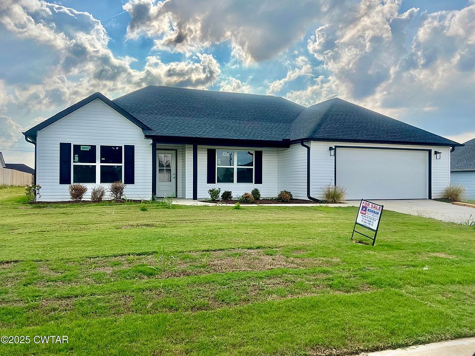 New Construction 3 BR 2BA Split bedroom plan. Large closet in master. Fiberglass sep shower with sep tub in master. Covered front porch. Lots of cabinets in the kitchen, Vaulted ceiling in greatroom with Elec fireplace
