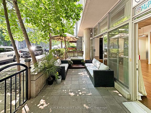 Exceptional Live/Work Loft. Investment Opportunity! Ready to move in. Very rare ground-level walk-in live/work loft. With its own entrance (on Stewart street) in the heart of King West. Featuring a huge south-facing terrace, 11-foot ceilings, an open-concept design, stunning floor-to-ceiling glass, bedroom with lots of natural light, huge den. This space offers both functionality and style. Its been MrPhotoCanvas (a profitable art-print business) for 10yrs. Whats next? Yoga studio? Salon? Dentist? Health & Beauty? Office? Or just an epic place to live. Live here, work here or both. 1min walk: street-car. 3min walk: new King/Bathurst Ontario-Line Station. *For Additional Property Details Click The Brochure Icon Below*