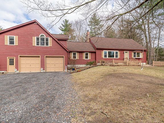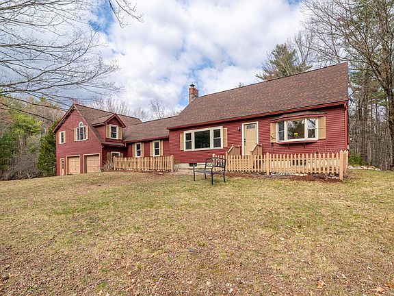 This privately situated, expansive cape blends New England charm and warmth with an open-concept layout for casual, spacious living at its best. Nestled off the road on a 2-acre wooded lot, the yard features raised beds, perennials, and herb gardens—perfect for gardening enthusiasts. Relax and enjoy the private backyard from the deck, plus a charming barn with freshly built chicken coop, ready for livestock or storage. Directly across the street: access to Powwow Pond, a 280+ acre body of water with a boat ramp—great for swimming, fishing, paddle sports, boating, and winter fun. Back inside, enjoy bright, cheerful open spaces with exposed beams, wide pine floors, an oversized family room with soaring ceiling, cozy living room with Vermont Castings wood stove, first-floor bedroom with full bath, and kitchen open to dining room. Upstairs offers two bedrooms with custom touches. Access the 4th bedroom/large bonus space on its private stairwell over the heated garage—ideal as an in-law suite or studio with a stunning 3/4 bath and balcony; or use as a game/flex room—tons of utility and built in storage! The basement is partially finished offering 2 heated spaces and plenty of storage. Convenient to Rt. 125 and shopping, close to all town amenities, yet nestled in a peaceful country setting in the SAU16 School District.