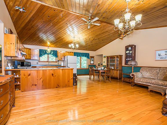 Welcome home to this charming 4-bedroom, 1.5-bathroom raised bungalow offering the perfect blend of comfort, space, and location. Set on a beautiful 1+ acre lot, the property boasts an oversized attached double garage and a fully finished basement, providing plenty of room for family living, storage, or hobbies. The expansive lawn is perfect for outdoor play, ensuring privacy and peace in the countryside. Just steps from the shores of Perry Lake, you'll enjoy easy access to swimming, boating, and year-round recreation, all while being surrounded by the natural beauty of Muskoka. Whether you're looking for a full-time residence or a peaceful getaway, this home is ready to welcome you.