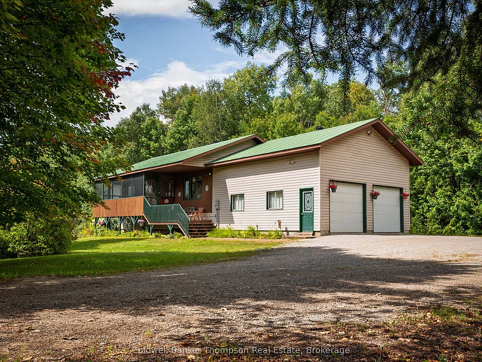 Welcome home to this charming 4-bedroom, 1.5-bathroom raised bungalow offering the perfect blend of comfort, space, and location. Set on a beautiful 1+ acre lot, the property boasts an oversized attached double garage and a fully finished basement, providing plenty of room for family living, storage, or hobbies. The expansive lawn is perfect for outdoor play, ensuring privacy and peace in the countryside. Just steps from the shores of Perry Lake, you'll enjoy easy access to Kearney's three-chain lake system and public beach, OFSC snowmobile trails, Algonquin West ATV trails, as well as being on the doorstep of Algonquin Park. Local amenities include LCBO, post office, restaurants, and retail locations, all within walking distance. The neighbourhood also features a community centre, park, library, churches, school bus access, and so much more. A pre-listing home inspection was done by seller and is available for your review!