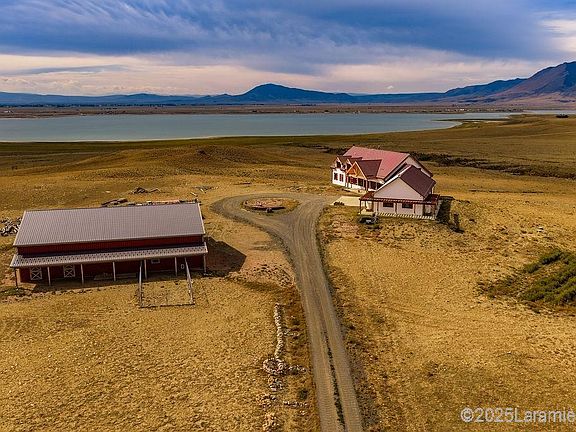Step into a world where rustic charm meets refined comfort -this extraordinary, one-of-a-kind, custom-designed home nestled within the prestigious Wild Horse Ranch subdivision. Perched gracefully on a stunning piece of land, this property offers an unparalleled panoramic view of the majestic mountains and the breathtaking Lake Hattie. The scenery is simply out of this world, with incredible sunrises and sunsets painting the sky with an abundance of local wildlife roaming free. It’s not just a home; it’s an invitation to live amid the raw beauty of Wyoming’s wild heart. The home itself is a true masterpiece, blending rustic elegance with modern design. Step inside and be greeted by a stunning post-and-beam design that unfolds into an expansive, open-concept layout. The soaring, vaulted ceilings create an airy sense of space, while intricate interior log details evoke warmth and timeless charm. The heart of the home features a striking stone kitchen range nook, a testament to the craftsmanship and character of the property. A whimsical, rope bridge loft adds a delightful touch of playfulness, offering a unique contrast to the refined beauty that flows throughout. After a long day, unwind in the luxurious master bath—your personal oasis where rustic charm meets serene relaxation. Soak in the large tub with breathtaking views of the lake and mountains, or wash away your worries in the spa-like stone shower. This property was built with a commitment to efficiency, designed to be extremely energy efficient for comfortable, sustainable living. The exterior is just as impressive as the interior. This property also features a beautiful barn and horse facility that's ready for your equestrian adventures. Every detail, from the grand to the joyfully unique, has been thoughtfully crafted to blend elegance with personality. With no comparable properties on the market, it stands as one of the most extraordinary and unique offerings you will find, seamlessly merging luxury, nature, and functionality in a way that is truly unmatched. HOA is $711 p/year.