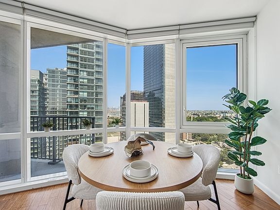 Welcome to Residence 34A at 66 Rockwell, a spacious 1-bedroom, 1-bathroom home offering modern elegance and breathtaking high-floor views. Expansive windows flood the residence with natural light, highlighting the open-concept living and dining area. The chef-inspired kitchen features Caesarstone countertops, stainless steel appliances, and a glass tile backsplash, while the king-sized bedroom provides a serene retreat with generous closet space. A spa-inspired bathroom and in-unit washer/dryer complete this refined Fort Greene home.