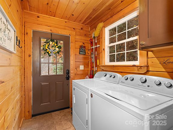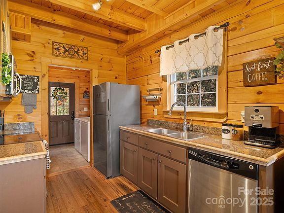 Welcome to your ultimate mountain getaway! This incredibly well-maintained log cabin, just minutes from the Maggie Valley Country Club, is the picture of rustic luxury and is offered completely turn-key, sold furnished (excluding artwork/personal items). This retreat features 2 bedrooms and 3 full baths, including a main suite sanctuary with a deep soaking tub, custom closet built-ins, and a heated tile floor. The second upstairs bedroom offers a unique touch with its hidden loft and has and full bath ensuite. The kitchen is equipped with stainless steel appliances and is open to the dining area overlooking the view and family room with stone fireplace. The main level office can be also be used as a third sleeping area by just adding a futon. Conveniently, a full hall bath is located right outside the office door. Major recent updates ensure peace of mind: a new roof (Sept 2025), a heat pump replaced approximately 2 years ago, and a just serviced wood burning fireplace (July 2025) with new venting, firebox, flashing and sealant. The value here is truly unbeatable as the purchase includes an adjoining 0.66-acre lot—offering the option to trim select trees to open up the mountain view—and a Polaris Off Road vehicle. Another positive, the exterior was freshly stained approximately 5 years ago. Don't just buy a cabin—buy the complete mountain lifestyle and move right in.