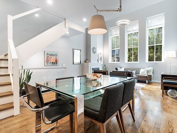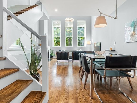 Exceptional urban living in this stunning, modern triplex townhouse in Jamaica Plain’s Sumner Hill. This two-bedroom, two-bathroom condo features 18+ ceilings, walnut-stained oak floors, and a striking glass staircase. A private entrance leads to a grand foyer, introducing luxury throughout. The main level boasts an open living area with a gas fireplace, and 8’ windows highlighting southern exposure. The adjacent dining area flows into a chef’s kitchen with Viking appliances, Metropolitan cabinetry, and Silestone counters. Two well-designed bedrooms offer ample storage & privacy. Enjoy two private outdoor spaces: a brick patio space, & a 504 sq ft roof deck w/ direct gas, a wet bar, and panoramic views. Includes heated garage parking. Embrace sophisticated urban living in this five-unit association. Located centrally in the heart of JP and affords opportunities to enjoy local restaurants, shops & Jamaica Pond. Easy access to Green Street T. Make this exquisite townhouse your new home.