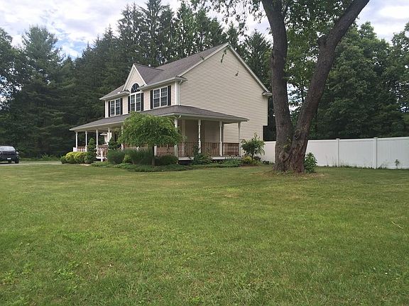 This Custom Colonial with farmers porch is tucked away yet conveniently located close to all amenities. Entertaining will be such a delight with this 7 Room, 3 bedroom, 2.5 bath home with a great floor plan, cozy living area w/fireplace and custom appointed details throughout. Features include Cherry cabinetry with granite, Brazilian cherry hardwood floors, large master w/walk in closet & private bath w/jacuzzi tub, oversized 2 car garage, finished basement with wet bar, c-air, plus a large professionally landscaped yard with sprinklers and paver patio with fire pit. Make your appointment today to see this beautiful maintenance free home set on 1.2 acres, you will certainly be impressed!