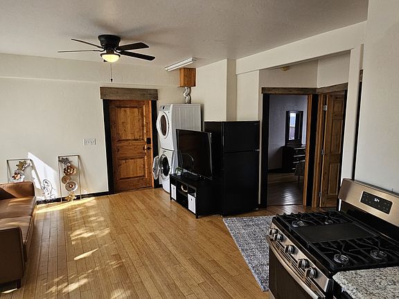 This upper-level two bed, one bath apartment overlooks the fine city of Pinedale. Home features hardwood floors, access through the lobby or through a private entrance. Apartment has washer/dryer, new appliances and is fully furnished. Price includes all utilities + high speed internet. Owner looking for first, last and $1000 cleaning deposit. One pet negotiable.