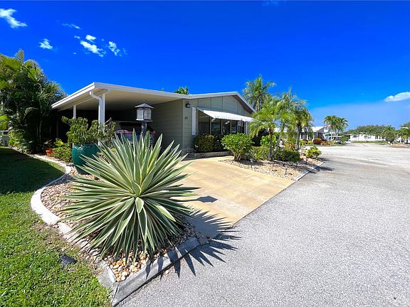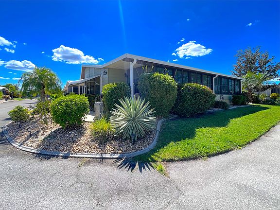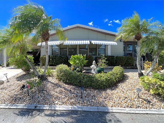 If you're looking for room to spread out, this is it! This huge 2-bedroom, 2-bath home offers over 1,700 sq. ft. of under-air living space-an incredible deal for the size. Both bedrooms feature walk-in closets, and the open layout includes a massive center kitchen island perfect for cooking, entertaining, or just gathering around with friends. You'll love the large air-conditioned lanai for relaxing or hosting, plus a private side lanai surrounded by mature landscaping for extra peace and privacy. The home is surrounded by beautiful tropical landscaping, giving it great curb appeal. Located in the gated, pet-friendly community of Jamaica Bay, this home offers plenty of space, comfort, and Florida charm-all at an amazing value! One of the lowest lot rents in the community, the lot rent includes water/sewer, lawn maintenance, trash service, cable, taxes, and the use of all the amazing amenities! Enjoy all that Jamaica Bay has to offer, from recreational facilities to social events that keep this community buzzing. Don't miss the chance to make this charming home yours in a place where everyday feels like a vacation! WELCOME TO PARADISE!